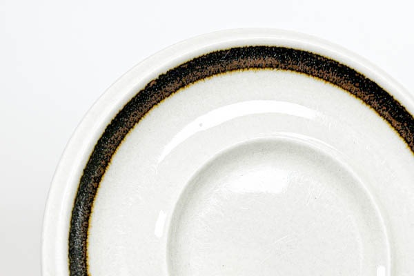 ARABIA社 Karelia/カレリアシリーズのSモデルカップ&ソーサーが入荷いたしました。フィンランドのカレリア地方からその名前がつけられたそうです。渋めの色合いで構成された落着きのあるデザイン。日本の食卓にもすんなりと溶け込んでくれそうです。ソーサーには使用中にできる擦り傷が多少確認できますが、目立った傷や欠けはなく、良好な状態を保っていると思います。ハンドペイントのラインに個体差がございます。ご注文後、詳細画像にてご確認いただきます。