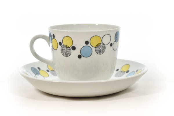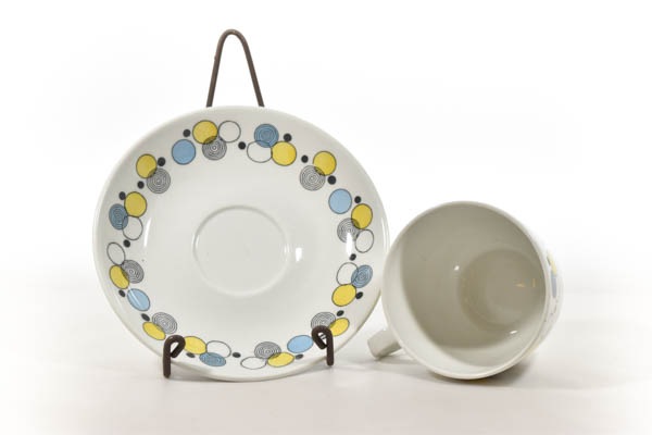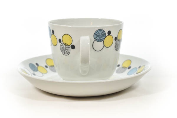 ARABIA/アラビア社よりPore/ポレシリーズのビンテージカップ&ソーサーが入荷いたしました。フォルムデザインはKaj Frank/カイ・フランクです。Poreとは、フィンランド語で「泡」を意味しており、少しくすみのある黄・水色の円の軽快なデザインが爽やかで可愛らしい印象です。