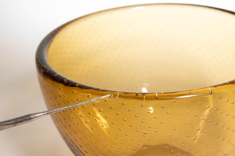 整列した気泡がどこから見ても美しいのでそのままオブジェとしてもおすすめです。読み取りにくいですが「G.Nyman Nuutajärvi notsjö」のカットサインも確認できます。