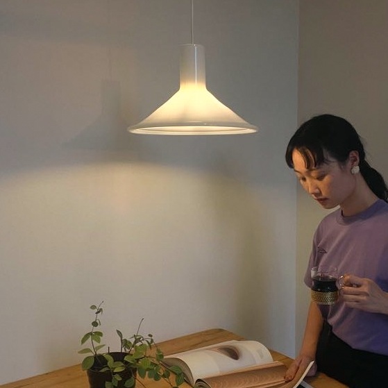 シンプルながらも洗練されたデザインの美しさを感じます。点灯時もホルムガード特有の乳白色のガラスが程よい灯りを演出しています。