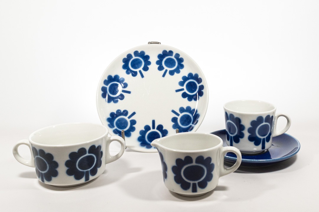 ステンシルとはカップの上に切り抜いた型を置いて、スプレーで描く技法です。Goran Back/ゴラン・バックがデザインを手掛けました。ステンシルシリーズは複数のデザイナーがフォルムをデザインし、またデコレーションデザインも複数のデザイナーが手掛けていて、様々なパターンを楽しめるシリーズです。ステンシル技法ならではの絵柄の輪郭の滲みや色のムラ感が素朴で可愛らしい印象です。