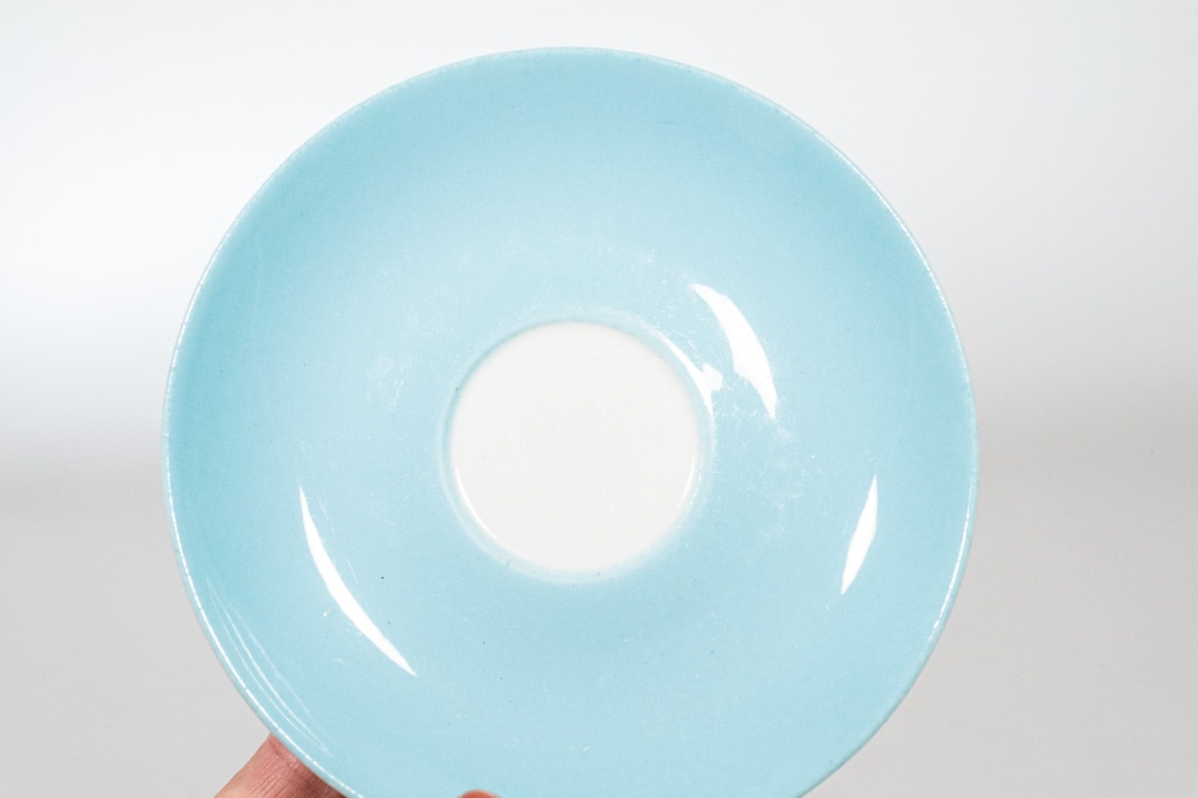 ソーサーのゆがみや擦れ、縁のあたり、キズや貫入が確認できますが、ビンテージならではの雰囲気と共に末永くお使いいただきたい1客です。