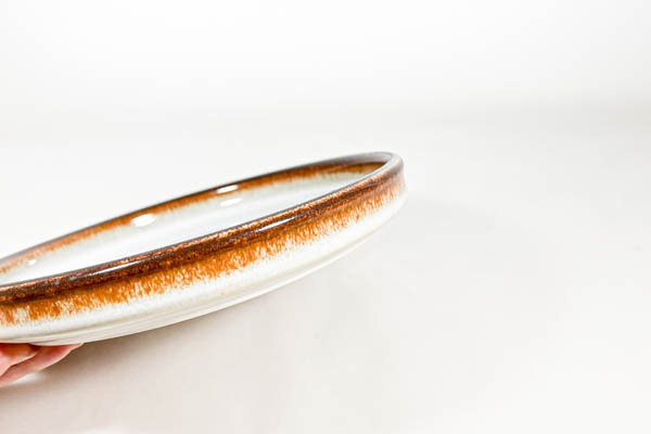 SOHOLM/スーホルム社よりSONJA/ソニヤシリーズのプレートが入荷いたしました。SOHOLM/スーホルムはデンマークの小さな島、ボーンホルム島で1996年に閉業するまで数々の名作を生み出した窯で、このシリーズはJoseph Simon/ヨセフ・シモンがデザインしました。ほんのりグレーがかったオフホワイト地にブラウンの釉薬が優しく落ち着いた雰囲気を醸しています。しっかりとした土の厚みのあるプレートは安定感のある印象です。