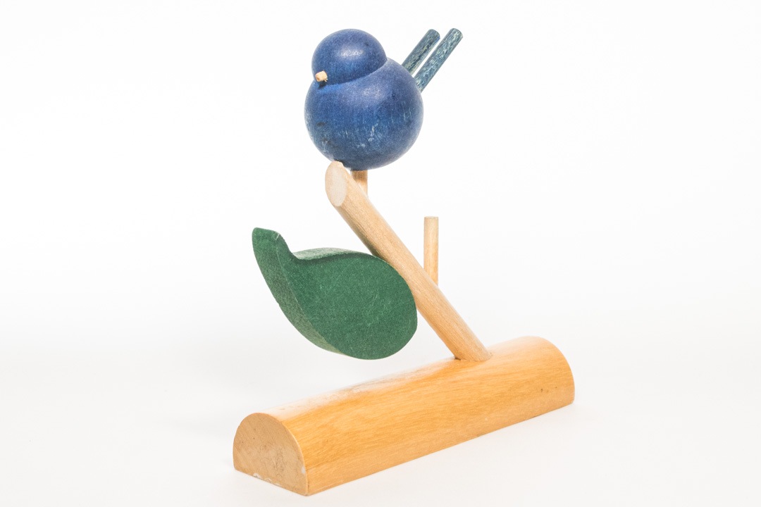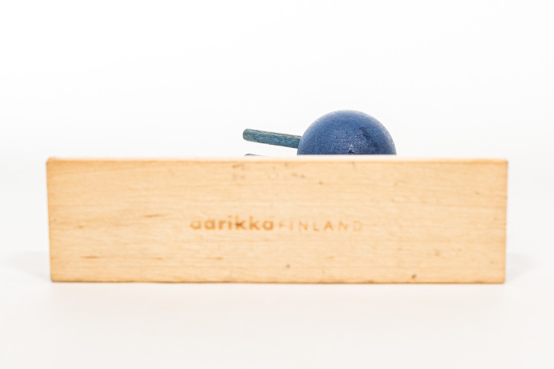 1954年に創業したアアリッカ社はフィンランドに自生している木材を原料とした木工製品を中心に製造を続けているメーカーです。木製の温かみのある可愛いオブジェで北欧空間を作ってみてはかがでしょうか。裏面にaarikkaの刻印があります。経年による擦れや色が薄くなっている箇所が確認できますが、雰囲気を損ねるものではないと思います。もう一羽の小鳥がとまっていたような箇所が確認できますが、あいにく飛び立ってしまったようです。