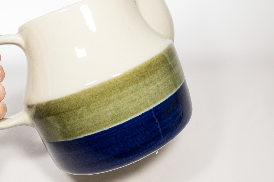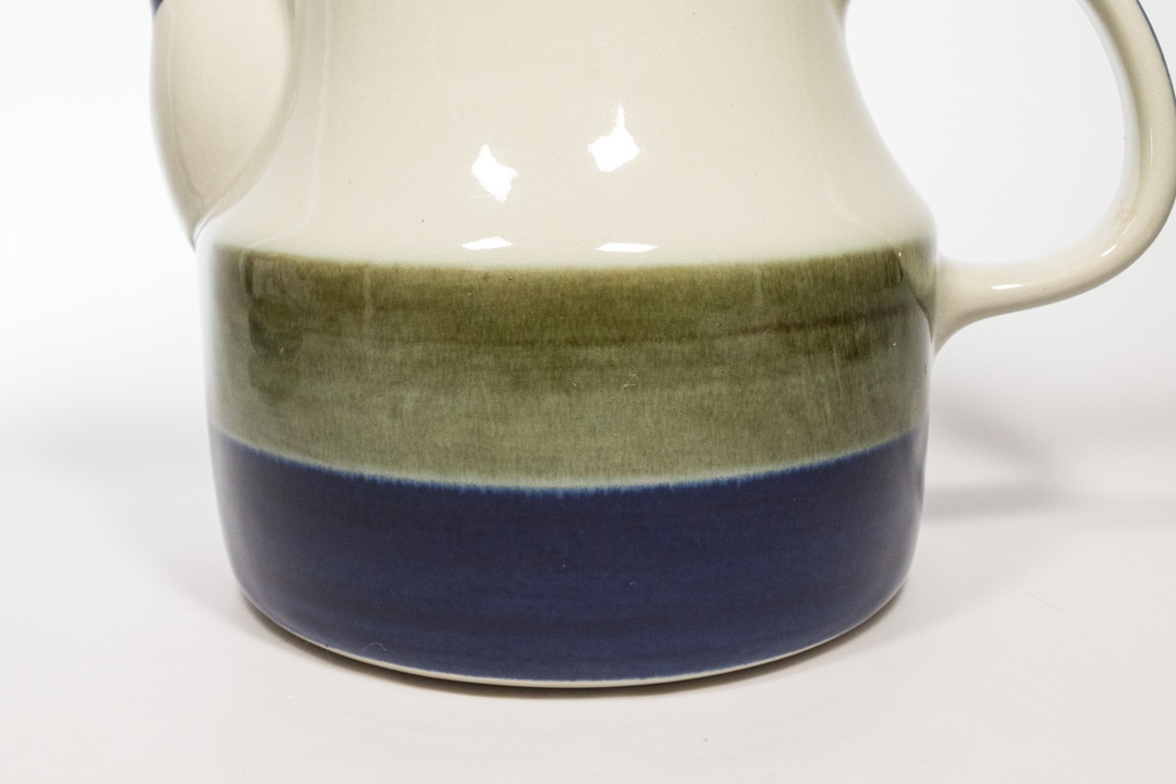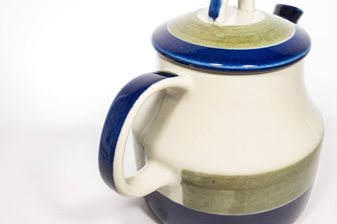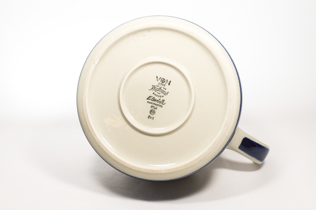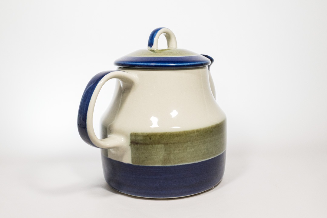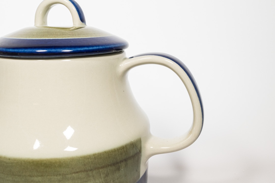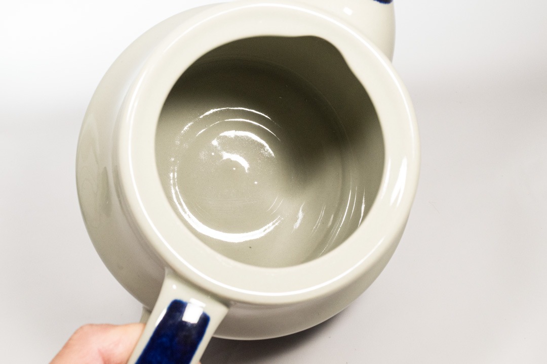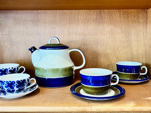 Rorstrand/ロールストランド社 ELISABETH/エリザベスシリーズのポットが入荷いたしました。ロールストランドで最も有名なデザイナーのひとりであるMarianne Westman/マリアンヌ・ウェストマンによるデザインです。 深いブルーとモスグリーンの色の出方やかすれ具合がものによって微妙に異なるのは、ひとつひとつ手作業で作られているからこその味わいです。細かな擦り傷が確認できますが、極端に美観を損ねるものではないと思います。