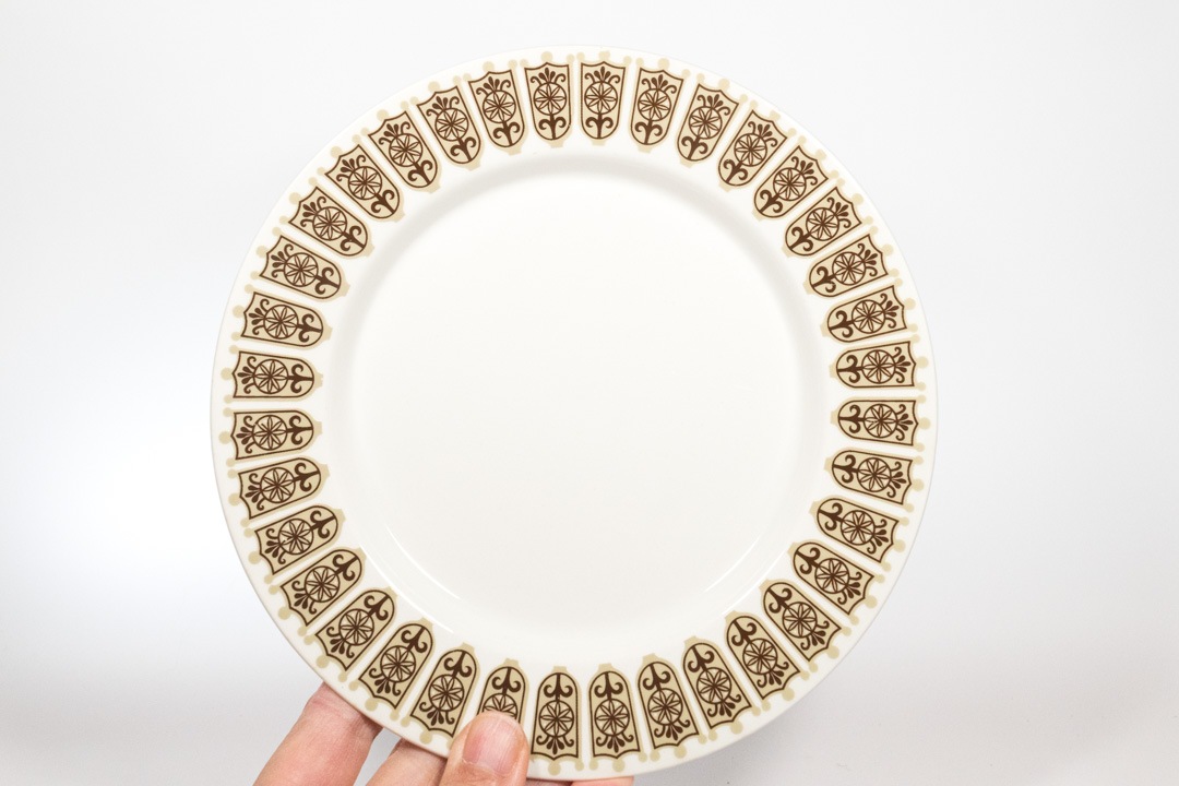 ARABIA社のビンテージ カップ&ソーサーが入荷いたしました。どこかオリエンタルな雰囲気漂う人気シリーズのRukinlapaです。特徴的なフォルムはKaarina Aho/カリーナ・アホによるデザイン 。デコレーションは繊細なラインを得意としていたRaija Uosikkinen/ライヤ・ウオシッキネンによるもの。フィンランド語で糸巻き機という意味を持つルキンラパはエスニック調のデザインと色合いが美しいです。脚付きなので柄やフォルムが美しく見えます。ソーサーには擦れ傷が確認できますが、極端に美観を損ねるものではないと思います。
