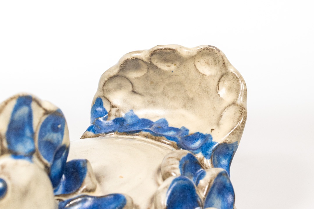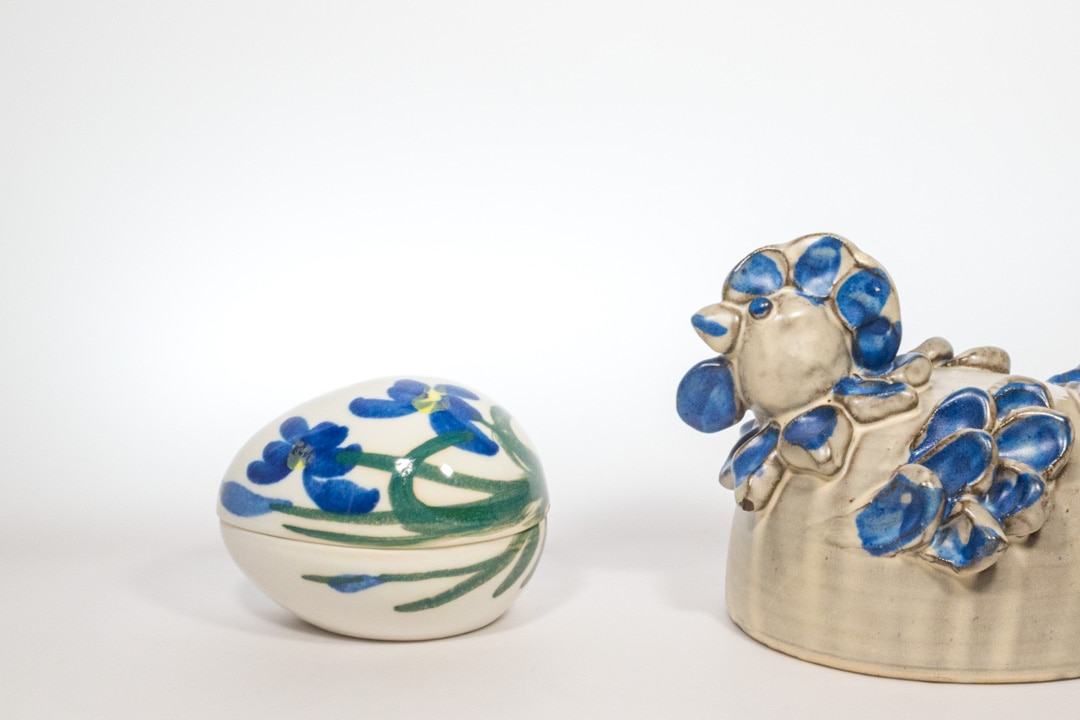 ハンドメイドならではの温かみと素朴さが感じられる、鮮やかなブルーのアクセントになったオブジェです。
