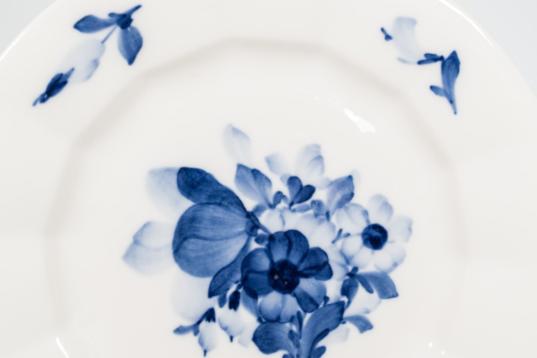 コバルトブルーで華やかなに描かれたブーケが特徴的ですが、このシリーズの絵付けは釉薬を塗る前に、生地に直接ハンドペインティングを施す「アンダーグレイズ」と呼ばれる技法で描かれています。生地に直接絵付けを行う場合、すぐに乾いてしまい修正が効かないため、絵付師の熟練された技術が必要な技法でした。また、絵付け後に高温で焼き上げるため、熱に強い顔料しか使えず、使用できるカラーは、コバルトブルーの他に、ごく限られた数しかないそうです。