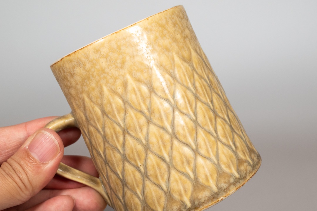 SIZE:カップ 幅(取っ手含む)9cm 奥行 7.5cm 高さ 8cm | |