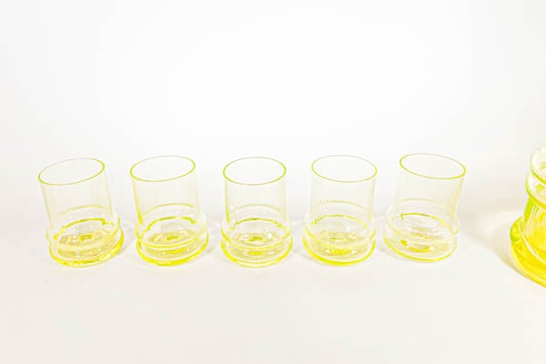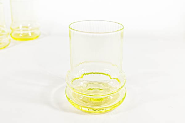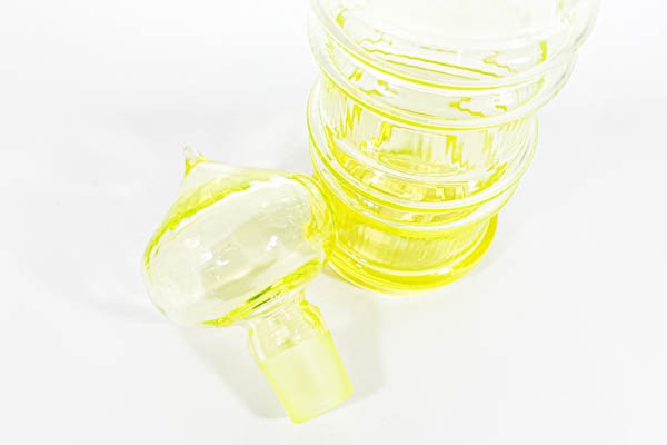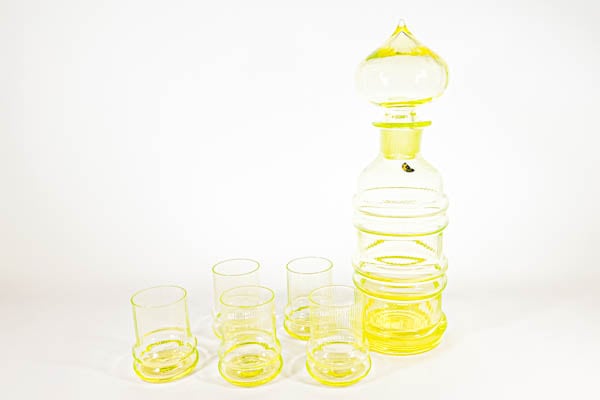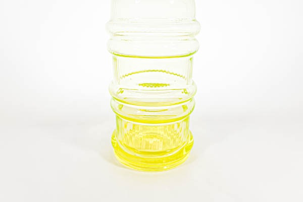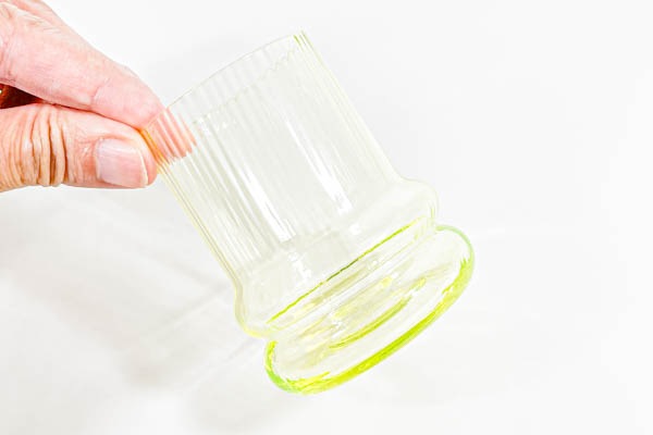 今では珍しい、ウランガラスで作られており、ブラックライトに照らすと蛍光色を発色します。