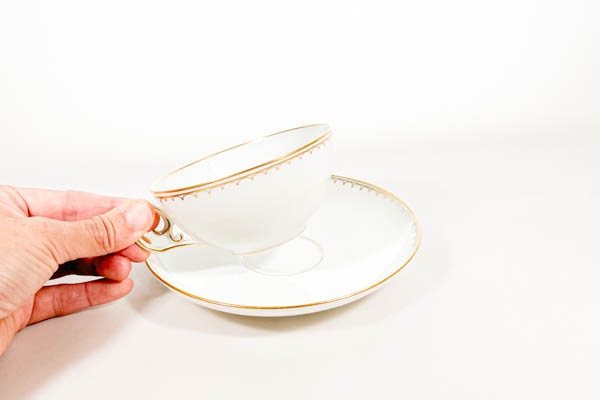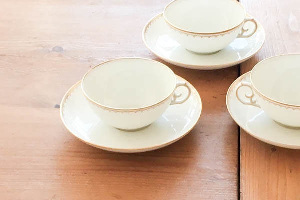 金縁の美しいフォルムでエレガントな雰囲気が漂い、手元に置いておきたくなる素敵なカップだと思います。持ってみると驚くほど軽く、上質さを感じます。