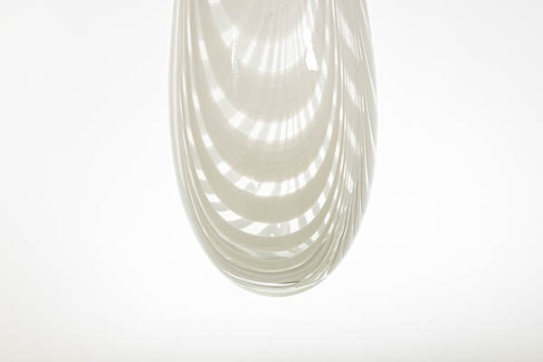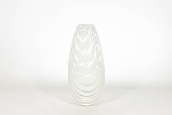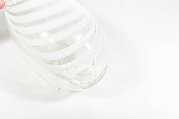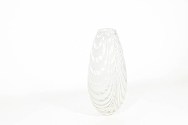 クリアガラスにホワイトカラーグラスで模様が描かれた美しいフラワーベースです。細かなすり傷が見受けられますが、欠けなど無く良好な状態を保っていると思います。