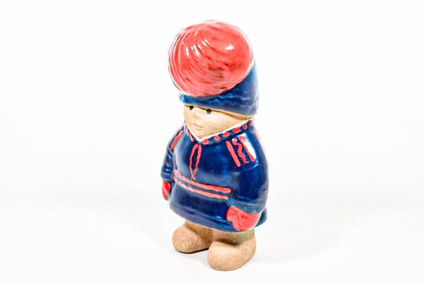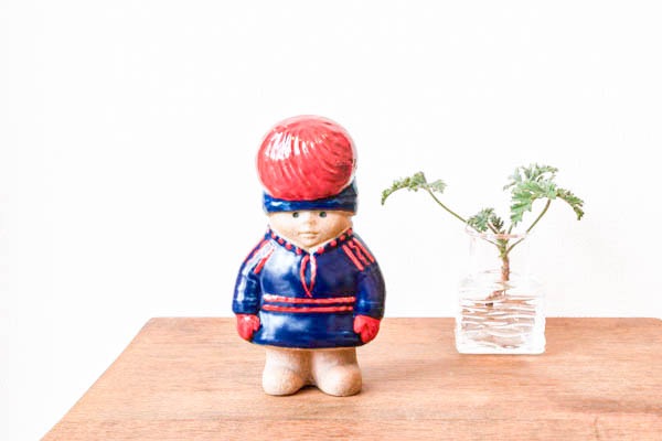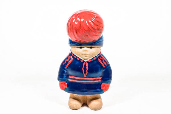 スウェーデンのGUSTAVSBERG/グスタフスベリ社よりLisa Larson/リサ・ラーソンが1975年にユニセフ基金のためにデザインした世界の子供たち(Children of the World)シリーズのNils(ニルス)です。こちらは1970-80年代に作られたオリジナル(ヴィンテージ品)です。北部、ラップランドのサーミ人の民族衣装を纏った子がモチーフです。