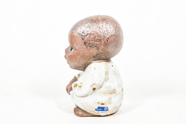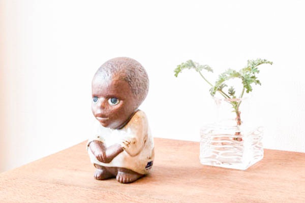 スウェーデンのGUSTAVSBERG/グスタフスベリ社よりLisa Larson/リサ・ラーソンが1975年にユニセフ基金のためにデザインした世界の子供たち(Children of the World)シリーズのSydです。こちらは1970-80年代に作られたオリジナル(ビンテージ品)です。側面にグスタフスベリのシールが残っております。南アフリカの子供をモチーフに作られました。