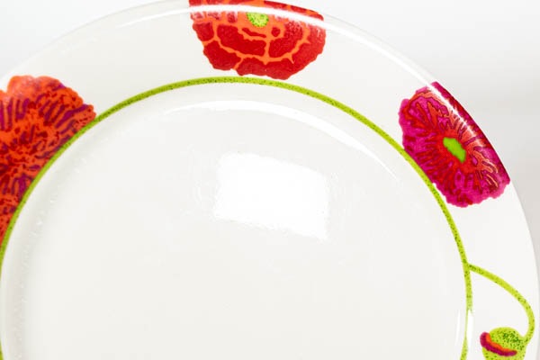 現在も活躍する2人のデザイナーが手掛けたプレートは、すっきりとしたフォルムに赤よりのピンクとオレンジの2色のケシの花が描かれ、グリーンのラインで茎を表現したような絵付けが楽しめる作品です。