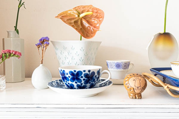ロールストランド社 Mon Amie シリーズのビンテージ カップ&ソーサーが入荷いたしました。ロールストランドで最も有名なデザイナーのひとりであるMarianne Westman/マリアンヌ・ウェストマンによるデザインです。 コバルトブルーカラーと美しい花のモチーフが、ロマンチックな雰囲気を醸し出しています。モナミは人気の高いシリーズとして復刻版も製造されていますが、オリジナルで製造された2種類あるティーカップ&ソーサーはいずれも復刻版では製造されていないヴィンテージのみのアイテムです。