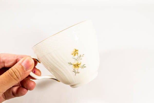 金縁の美しいフォルムとクラシカルな絵柄は上品な雰囲気が漂い、手元に置いておきたくなる素敵なカップだと思います。