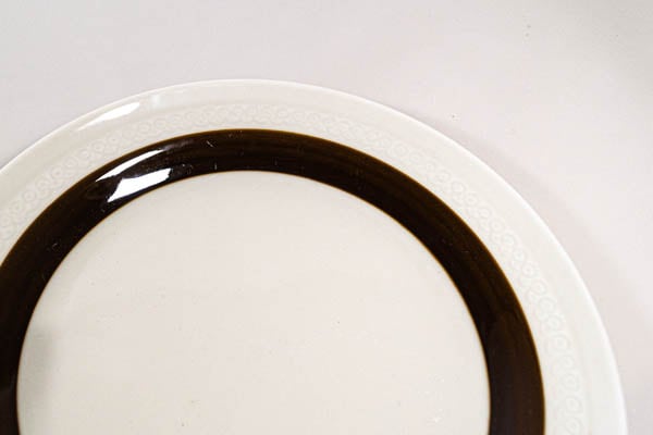 Rorstrand/ロールストランド社よりForma/フォルマシリーズのプレートが入荷いたしました。オフホワイトにハンドペイントのブラウンが落ち着いた印象で、シーンを問わず活躍してくれそうです。縁まわりの白地の部分にも丸い模様のエンボスが入っており、うっすら見えて可愛いらしいたたずまいです。