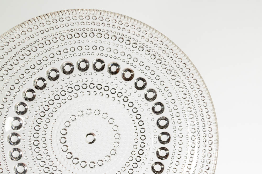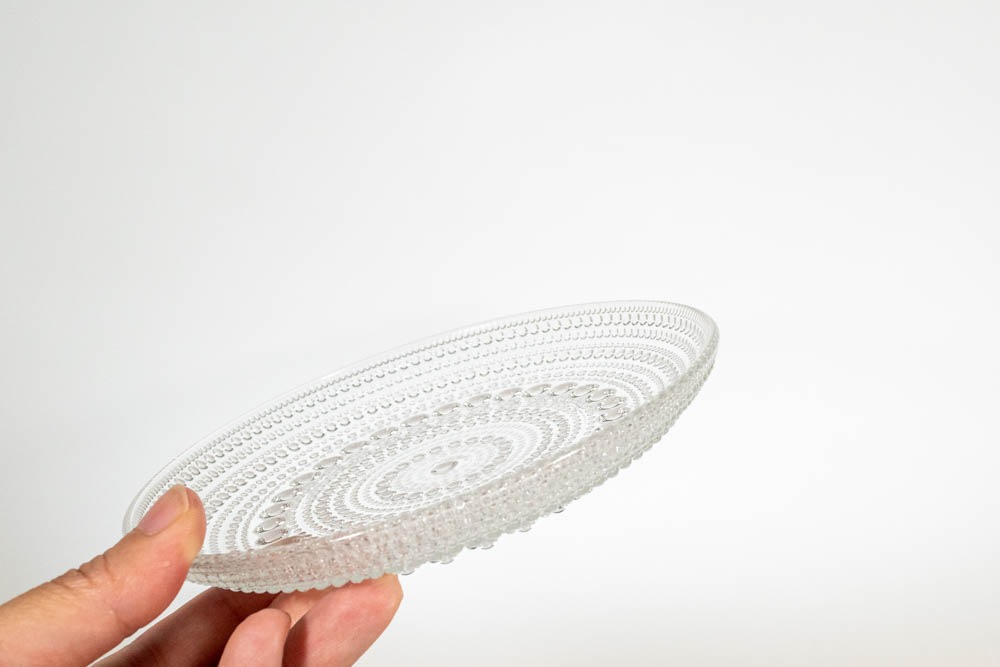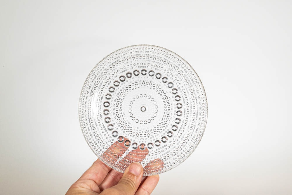 Nuutaj??rvi社のビンテージ プレートが入荷いたしました。Nuutaj??rvi社は創業は1793年。Kastehelmi/カステヘルミ シリーズは1964年にOiva Toikka/オイヴァ・トイッカによってデザインされ、1988年まで生産されていました。2010年からはOivaのデビュー50周年を記念してiittalaによって復刻版が作られています。Kastehelmiとは朝露のしずくを意味していて、その名の通り、太陽に照らされてキラキラと輝くしずくが散りばめられたようなデザインです。昔も今も変わらず人々に愛されるOivaの名作の1つだと思います。