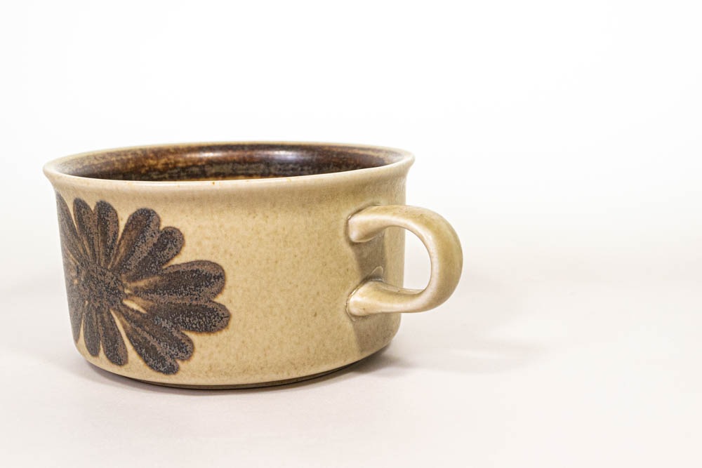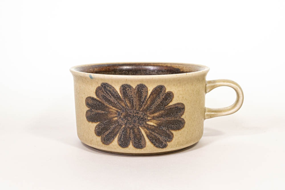 ARABIA/アラビア社よりビンテージのカップ&ソーサーが入荷いたしました。多彩なデコレーションで展開されているSモデルというフォルムデザインをUlla Procope/ウラ・プロコッペが手掛けています。手描きのため一つ一つ柄のタッチが違っているのも魅力のひとつで、ペイントや描かれたラインも個体差があります。間口が広く浅型なので、飲み物やスープなどの他、アイスクリームなどデザートにも幅広い用途にお使いいただけると思います。