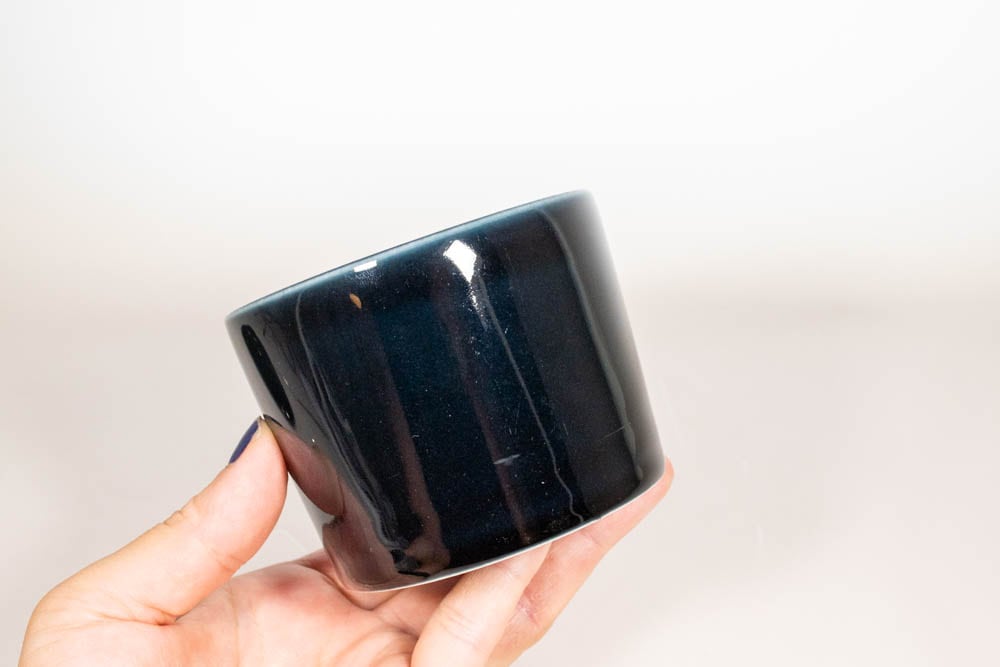 ARABIA/アラビア社よりKILTA/キルタシリーズの蓋つきのカップが入荷いたしました。デザインはフィンランドの巨匠、カイ・フランクによるもので、現在でも人気の高いiittala/イッタラ社のティーマシリーズの原型になったシリーズです。独特の釉薬が使われており、奥行のある色合いが特徴で、こちらは光の加減で濃紺にも見える黒です。
