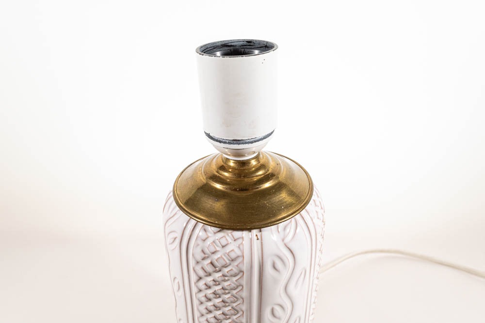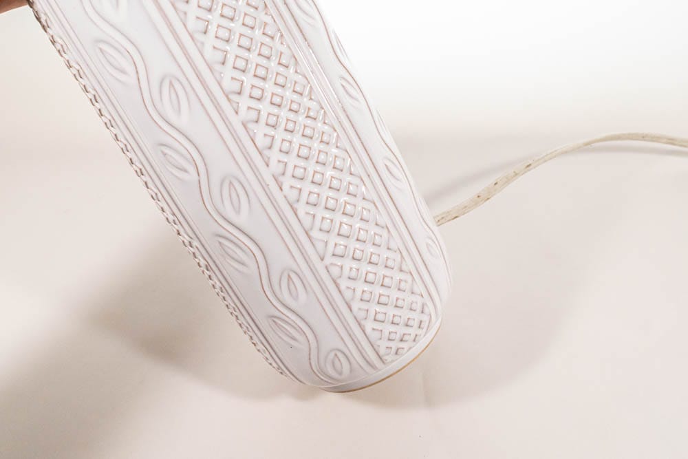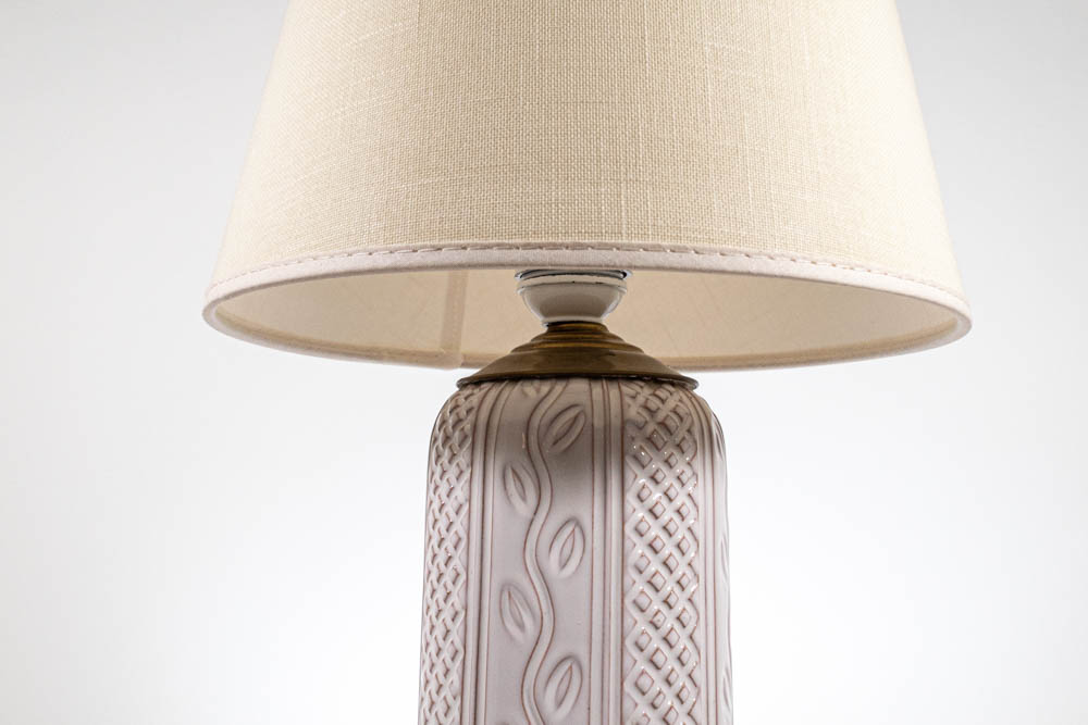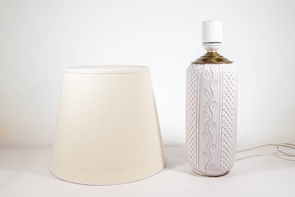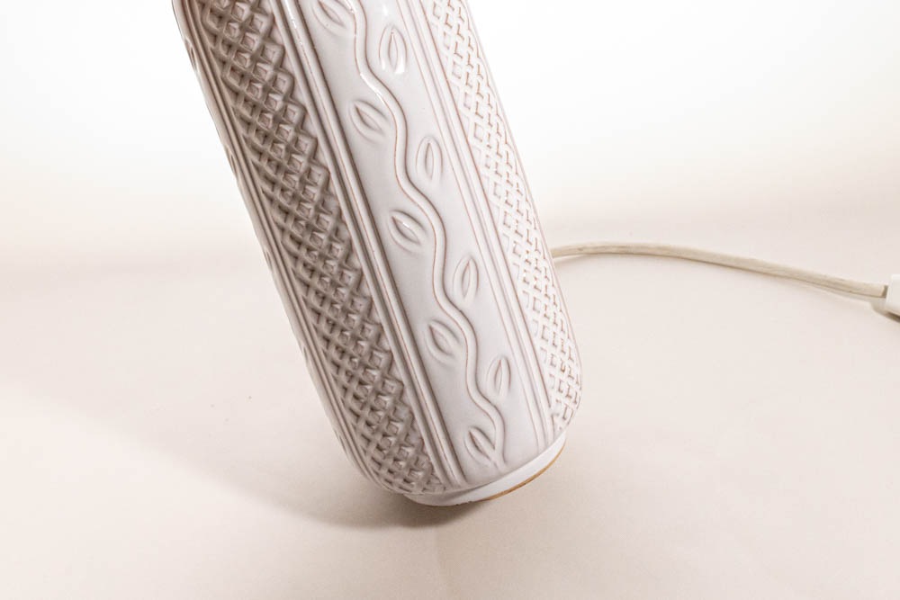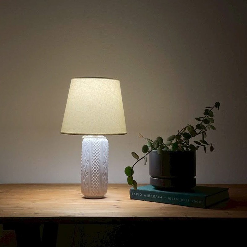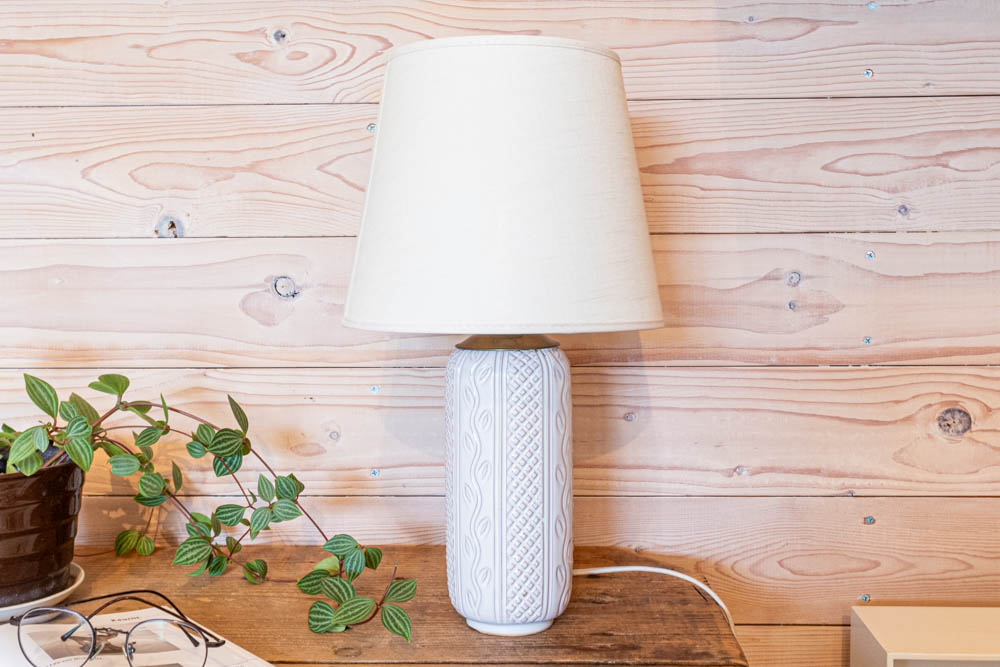 デンマーク製のテーブルランプが入荷しました。レース編みのような模様に薄らピンクがかったような白い釉薬が美しくも温かみを感じるランプです。デンマークから直接取り寄せた新品のシェードを合わせ、柔らかい光で落ち着いた空間を演出いたします。