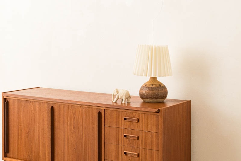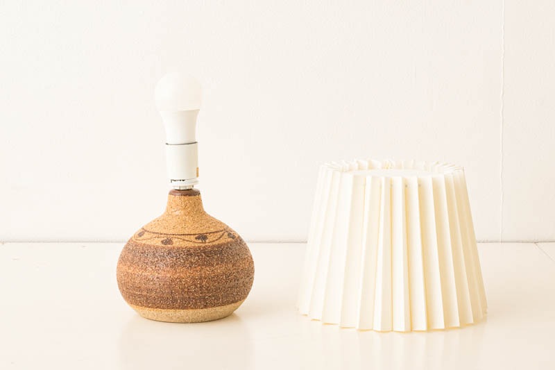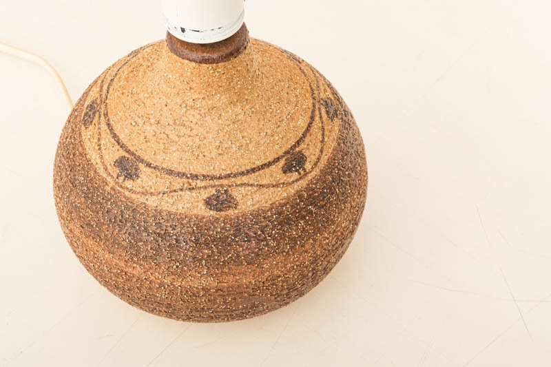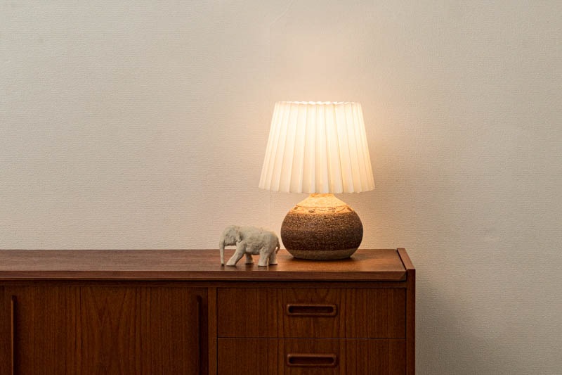 デンマークSOHOLM社製のテーブルランプが入荷しました。スーホルムはデンマークのBORNHOLM(ボーンホルム)島に1835年に創業し、深みのある釉薬で素晴らしい陶器を多く残してきた陶器工場です。1996年に閉窯となり、今ではヴィンテージ品でしか入手でない貴重なものとなりました。ベースはザラザラとした質感で立体感が生まれ、ボーンヘルム島の”土”を思わせる幾何学模様が、落ち着いた色味で表現されています。