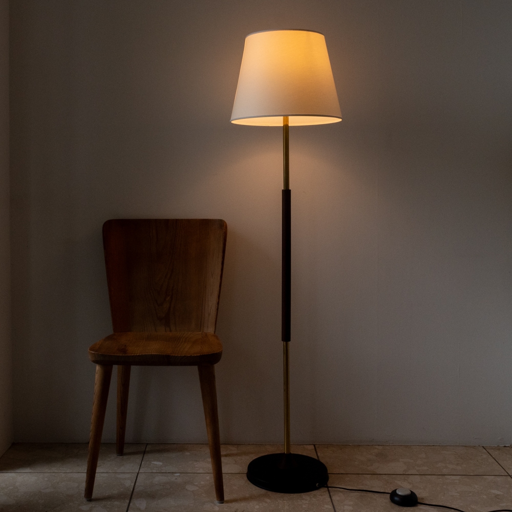 フィンランド製のビンテージフロアランプが入荷いたしました。シンプルなデザインで真鍮とチークの素材の雰囲気が引き立つ上品なたたずまいをお楽しみいただけると思います。