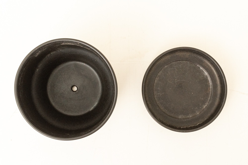 鉢の裏面と受け皿の両方にスタンプが残っております。