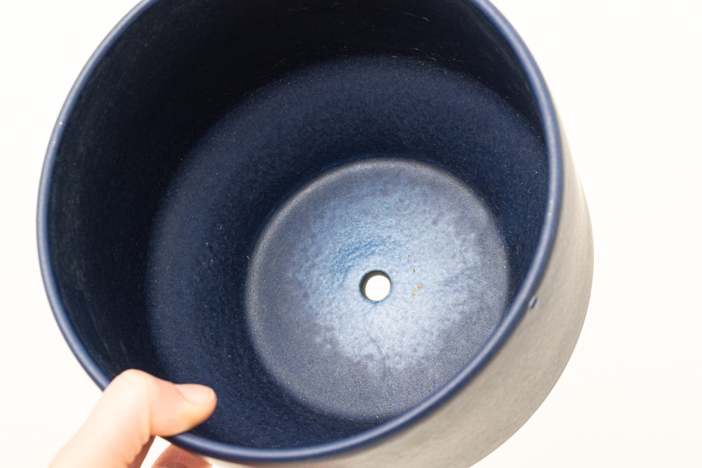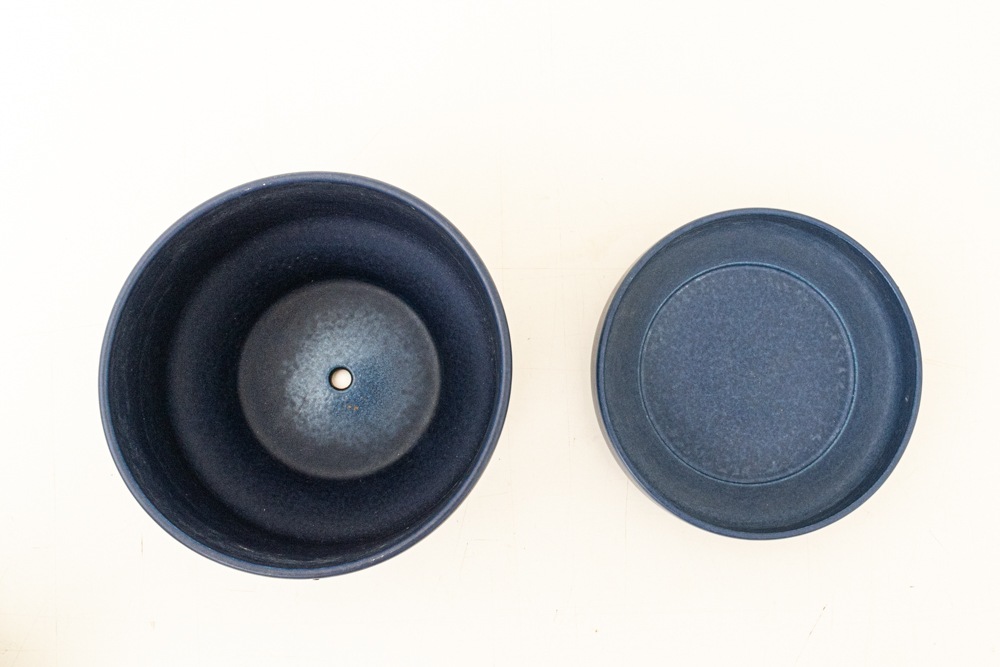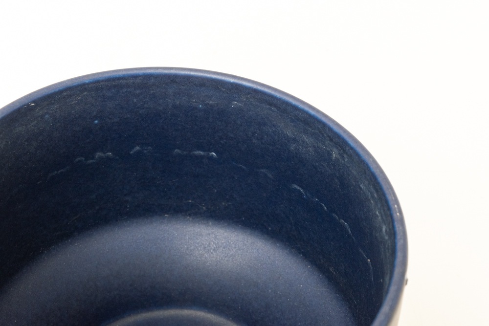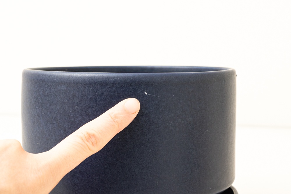 屋外で使用されることが多いフラワーポットですので、使用感やポットの内側を中心に汚れがございますが、年代相応のもので極端に印象を損ねるものではないと思います。こちらのブルーのフラワーポットは現地でもあまり見かけない珍しいカラーです。