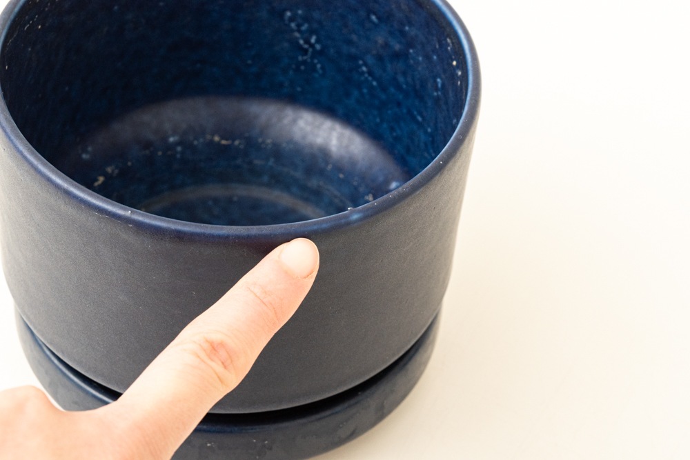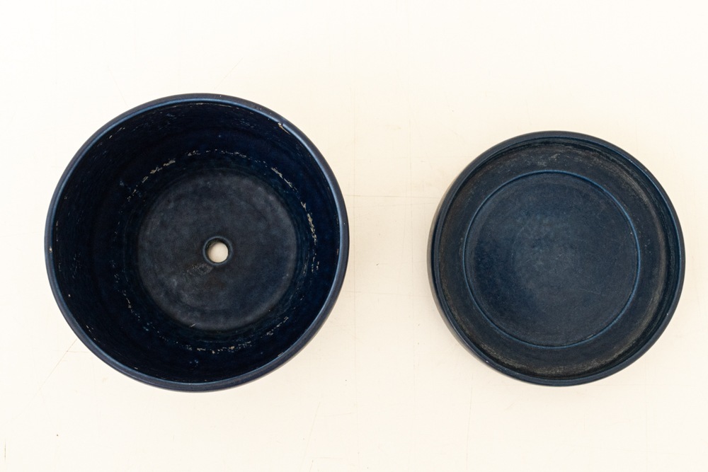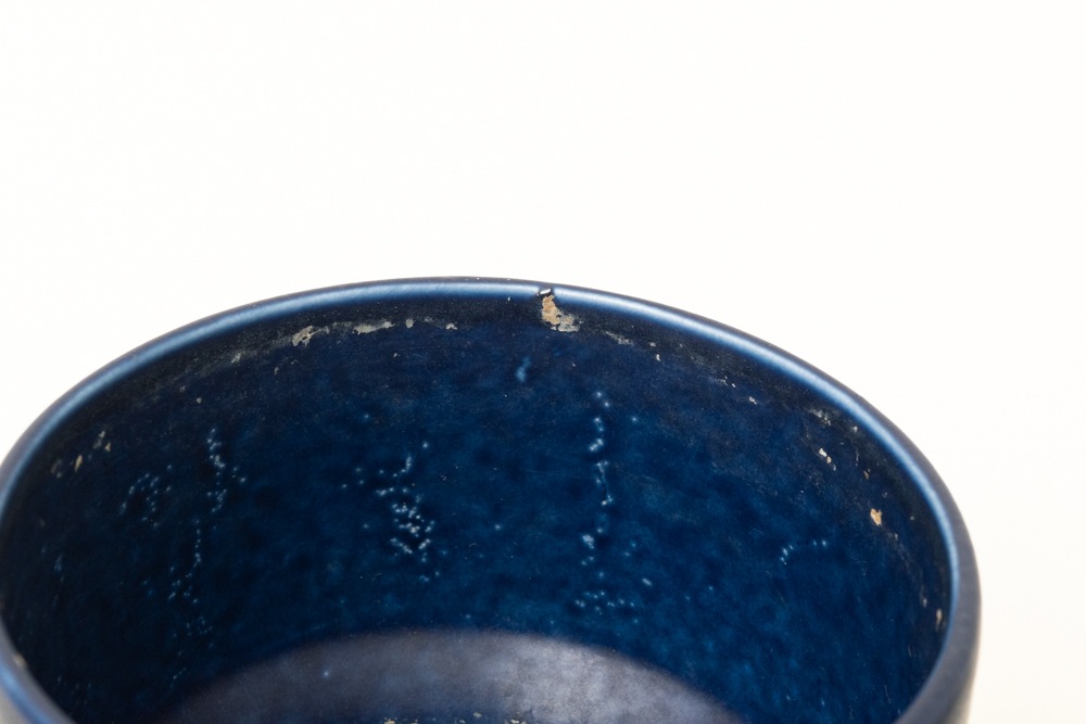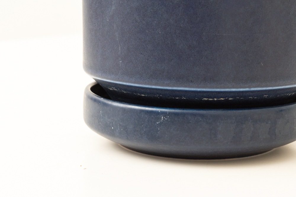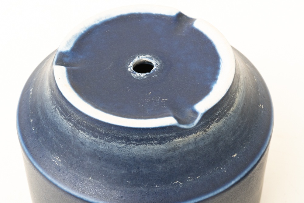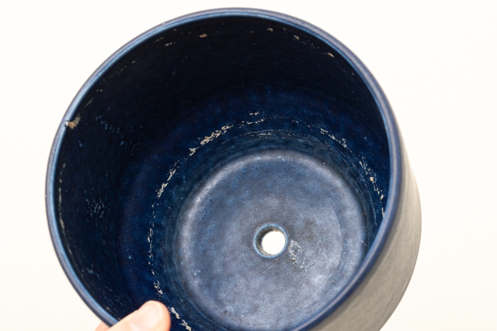 屋外で使用されることが多いフラワーポットですので、使用感やポットの内側を中心に汚れがございますが、年代相応のもので極端に印象を損ねるものではないと思います。こちらのブルーのフラワーポットは現地でもあまり見かけない珍しいカラーです。
