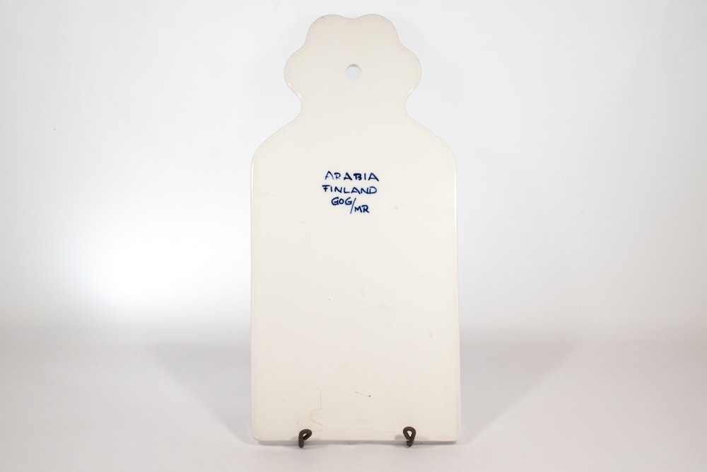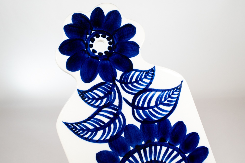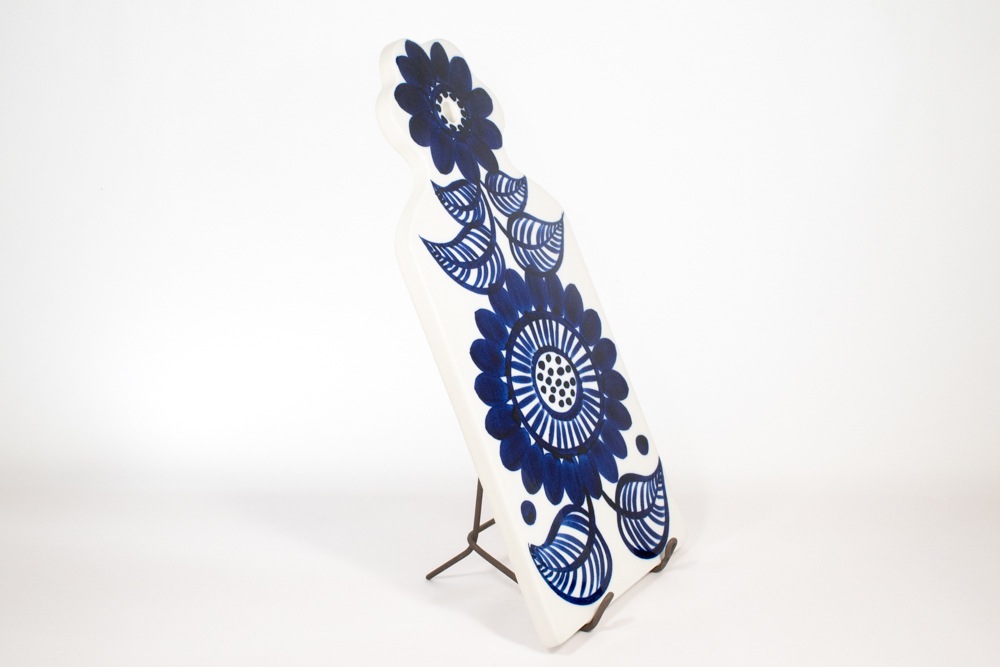 ARABIA/アラビア社 Atelje/アトリエ シリーズのカッティングボードが入荷いたしました。デザインは、コスモスシリーズでも知られるGunvor Olin-Gronqvist/グンヴァル・オリン・グラングヴィストが手掛けています。手書きでペイントされた大胆なお花模様がとても印象的な作品です。置いてあるだけで、キッチンまわりが華やかになりますね。穴が空いていますので、カッティングボードとしてだけでなく陶板のように飾っても素敵だと思います。