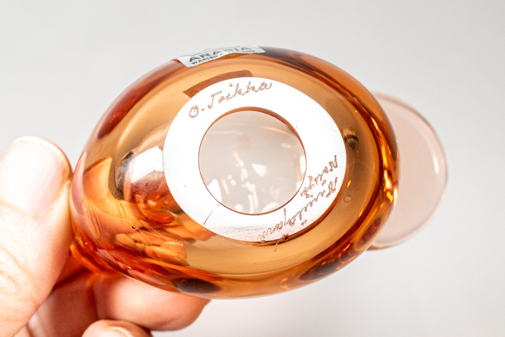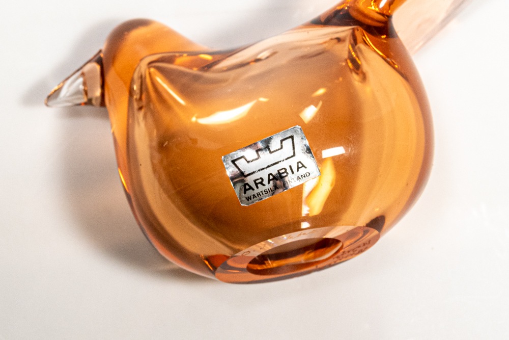 デザイナーであるOiva Toikka/オイヴァ・トイッカも多くの名作を発表しておりsieppo/シエッポは初期の1972-78年に製造されたものになります。底面に「Oiva Toikka nuutajarvi notsjo」と刻印があります。Notsjoとはスウェーデン語のヌータヤルヴィという意味。昔のバードにはこのNotsjoが入っております。ARABIAの銀シールが貼られた希少なものです。