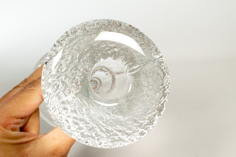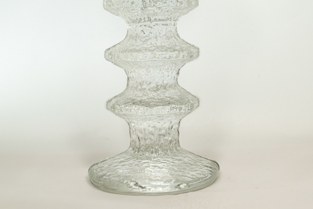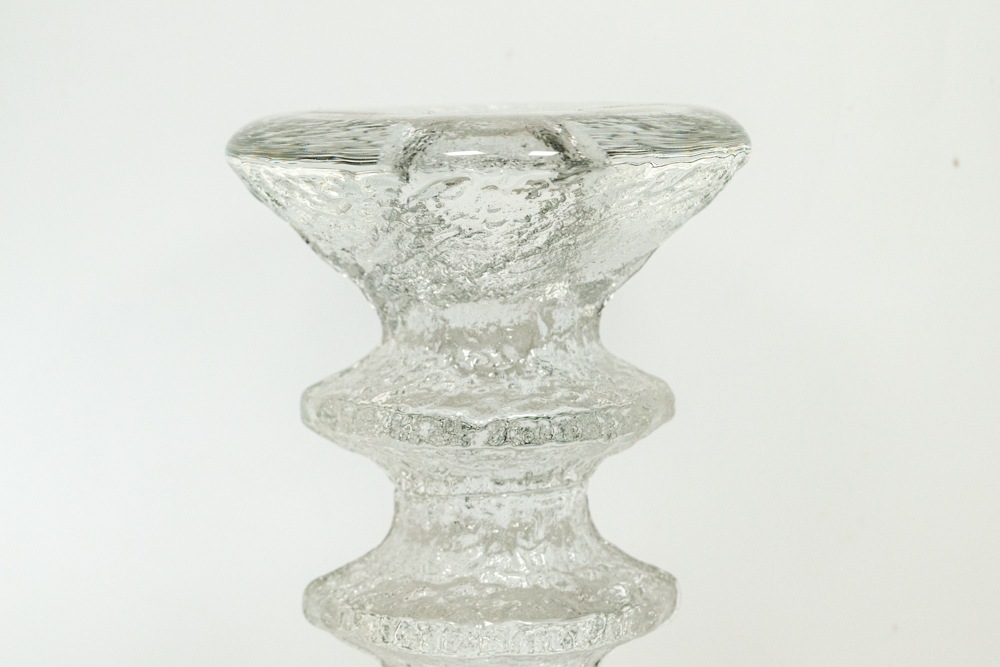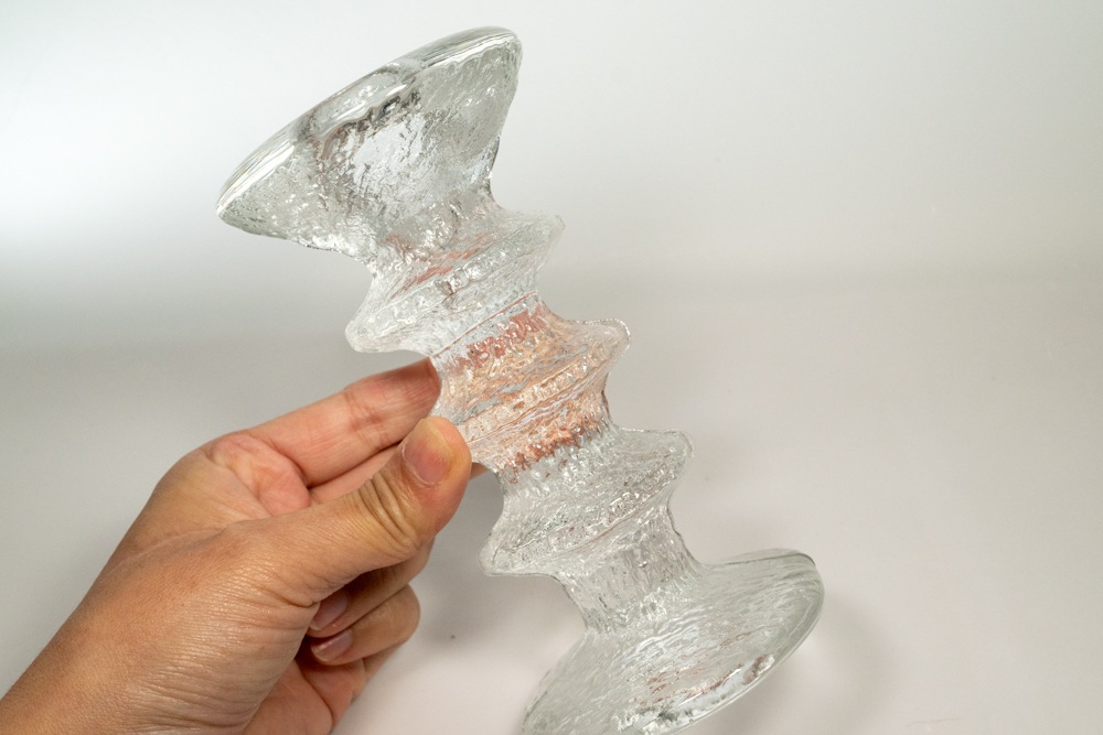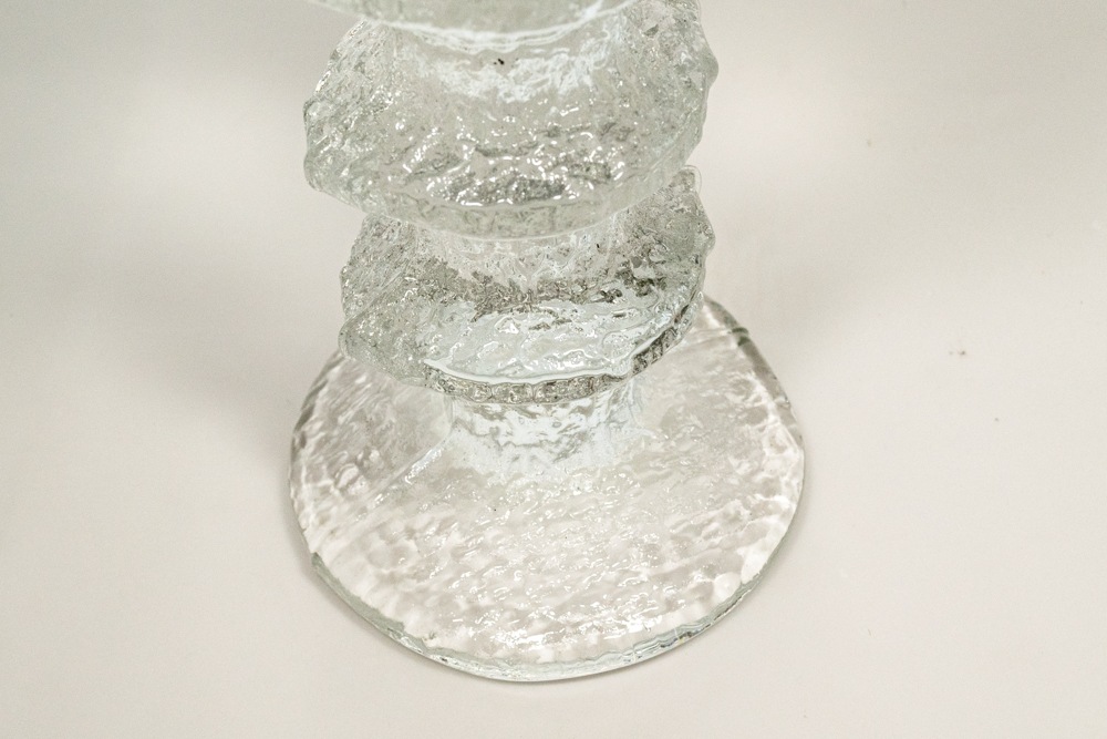デザインを手掛けたのはTimo Sarpaneva。フィンランドを代表するデザイナーであり、イッタラ社のシンボルである「i」マークを生み出したことでも知られています。今回入荷したFestivoは氷の柱のようなキャンドルホルダーです。表面はざらざらとした手触りで、上部はつるりとしています。覗き込むとまさに氷のようなデザイン。