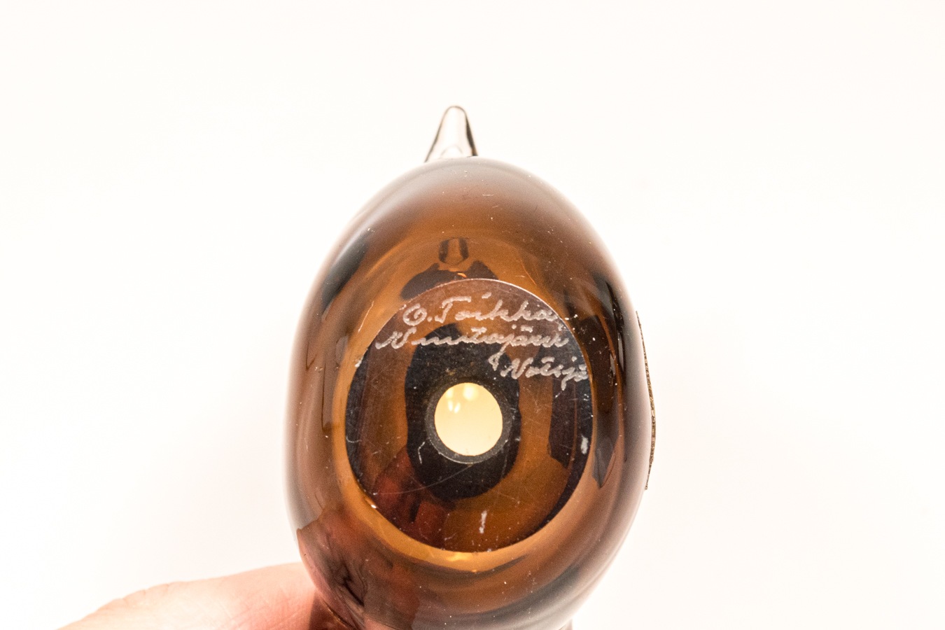 デザイナーであるOiva Toikka/オイヴァ・トイッカも多くの名作を発表しておりsieppo/シエッポは初期の1972-78年に製造されたものになります。底面に「O. Toikka nuutajarvi notsjo」と刻印があります。Notsjoとはスウェーデン語のヌータヤルヴィという意味。昔のバードにはこのNotsjoが入っております。