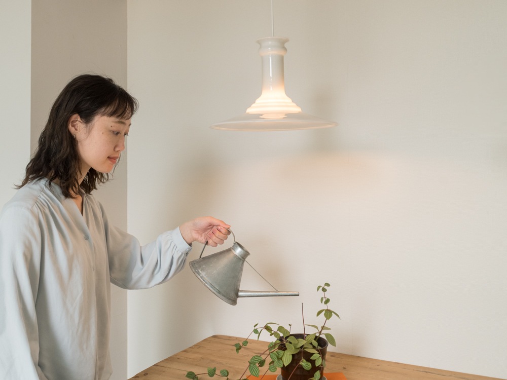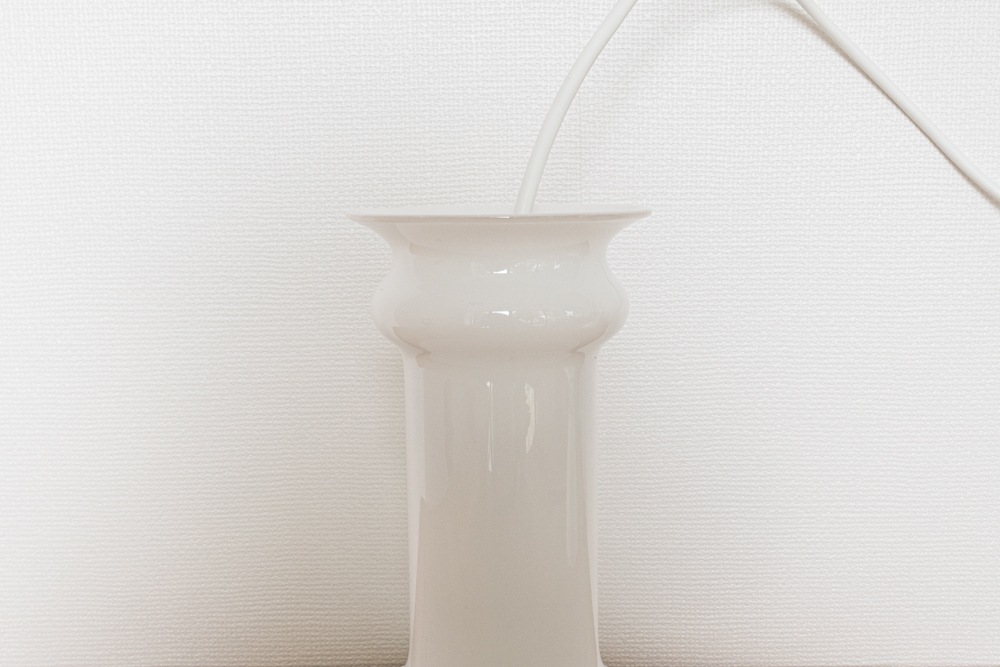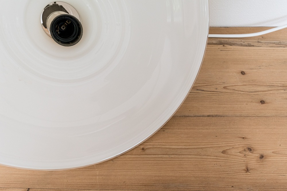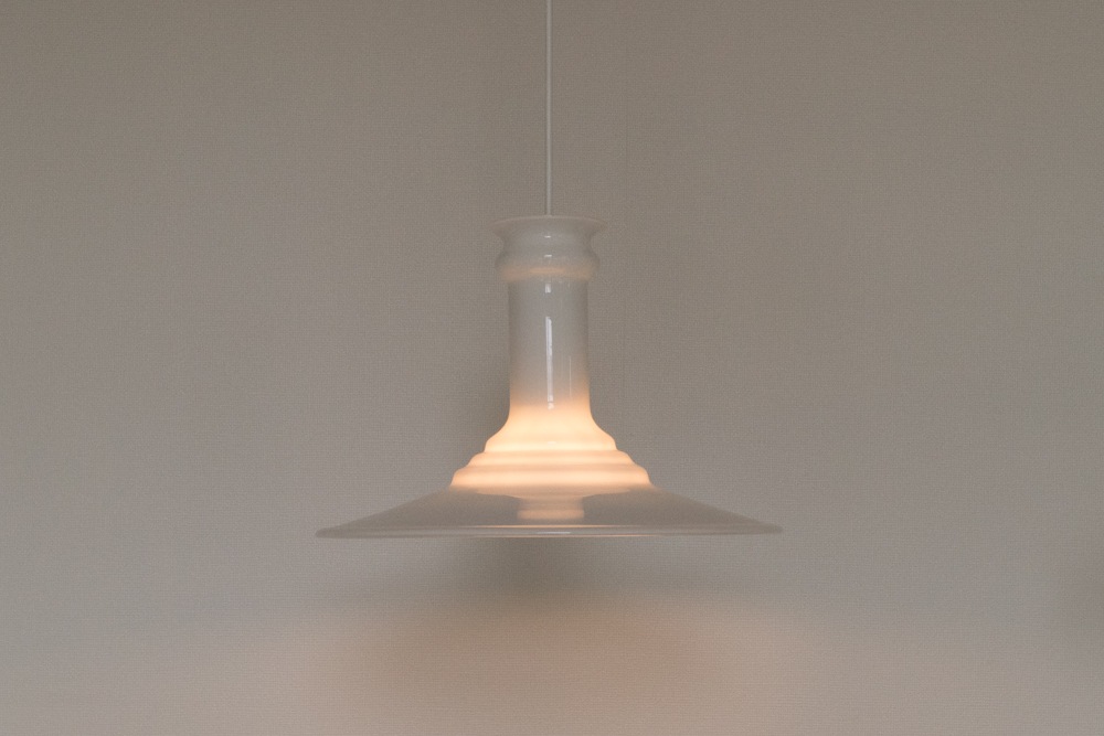 ホルムガードのデザイナーSidse Wernerによってデザインされました。円柱先の広がりに段々がアクセントになりシンプルの中にエレガントさもうかがえるデザインだと思います。また、ホルムガード特有の乳白色のガラスが程よい灯りを演出しています。