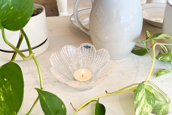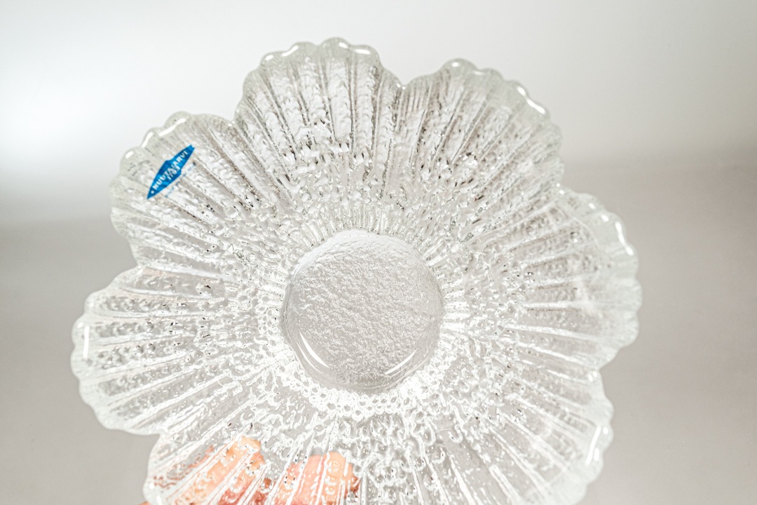 Nuutajarvi社のビンテージ キャンドルホルダーが入荷いたしました。Nuutajarvi社は創業は1793年。可憐な花びらを思わせるデザインです。キャンドルを灯し、花びらの部分を通して卓上に浮かびあがる模様も素敵ですが、お日様の光の反射もまた美しいです。