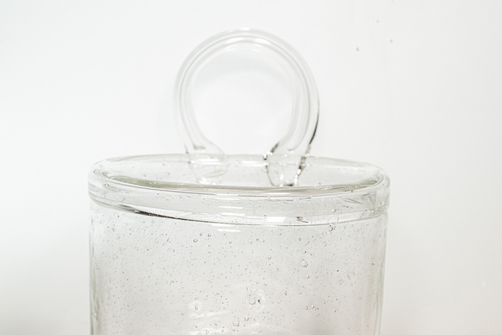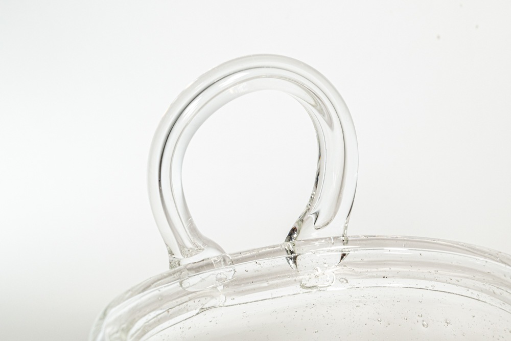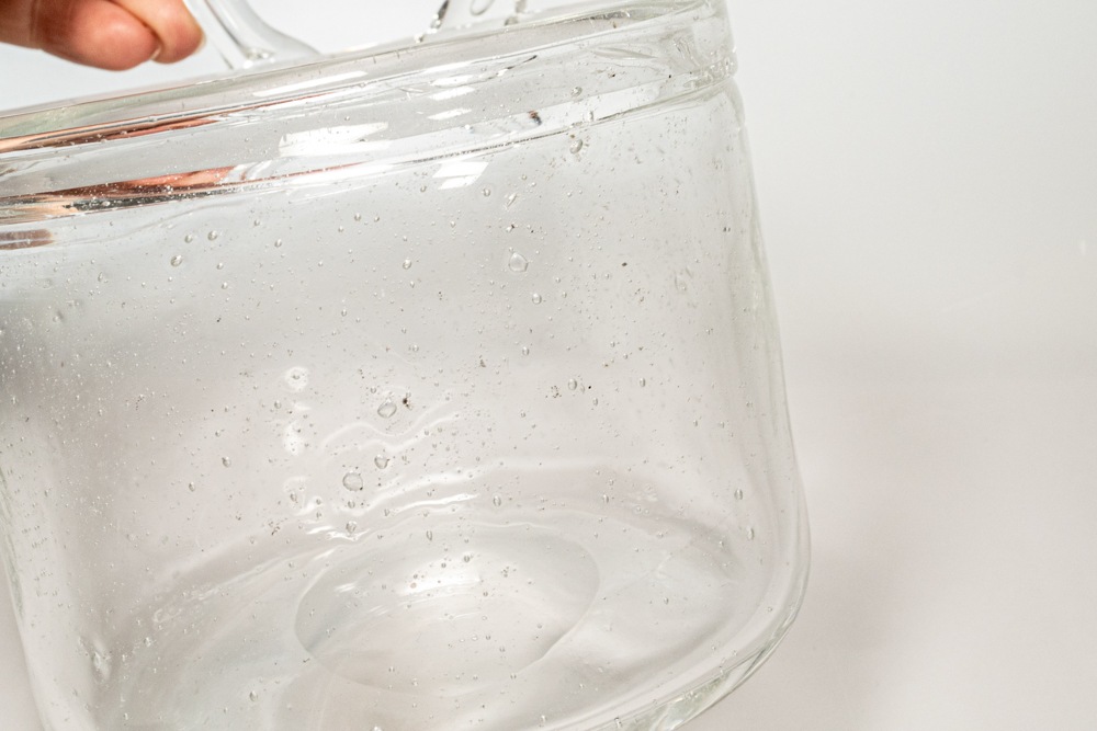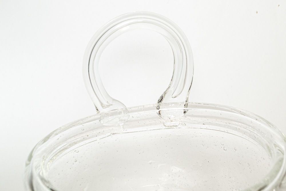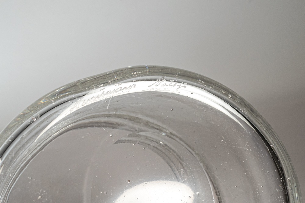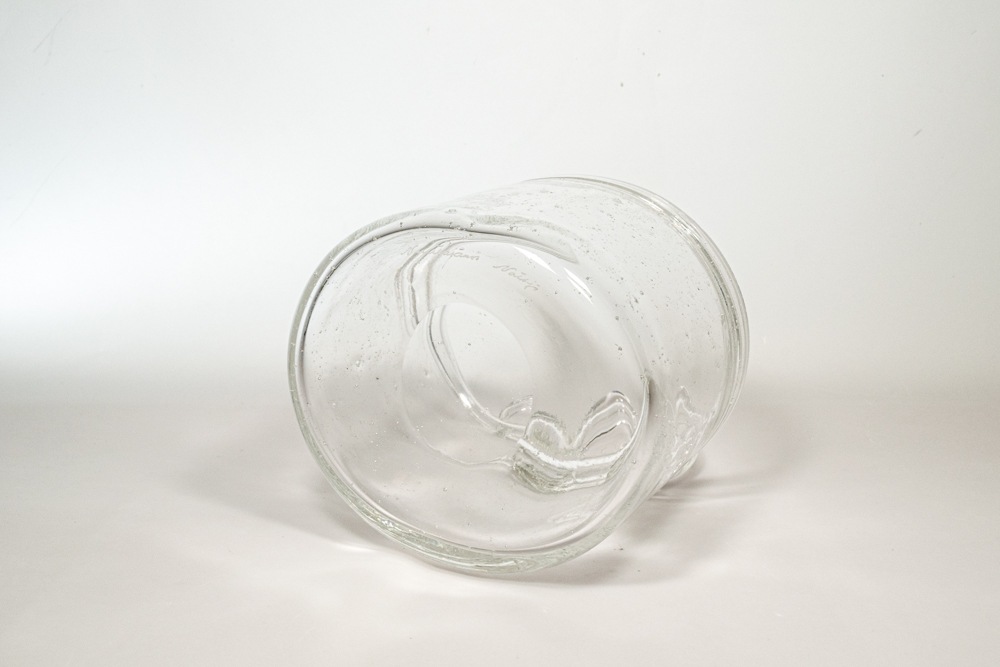 無数の気泡を多く入れた手法で作られた作品です。厚手のガラスのため安定感があり、内側から触れると気泡の凹凸を感じられます。職人たちの手吹き製法で作られているため、個体差がありひとつとして同じものは存在しません。 底には、「Nuutajarvi Notsjo」のカットサインが残っています。状態としましては、擦れや小さなあたり傷などが確認できますが年代相応のものだと思います。