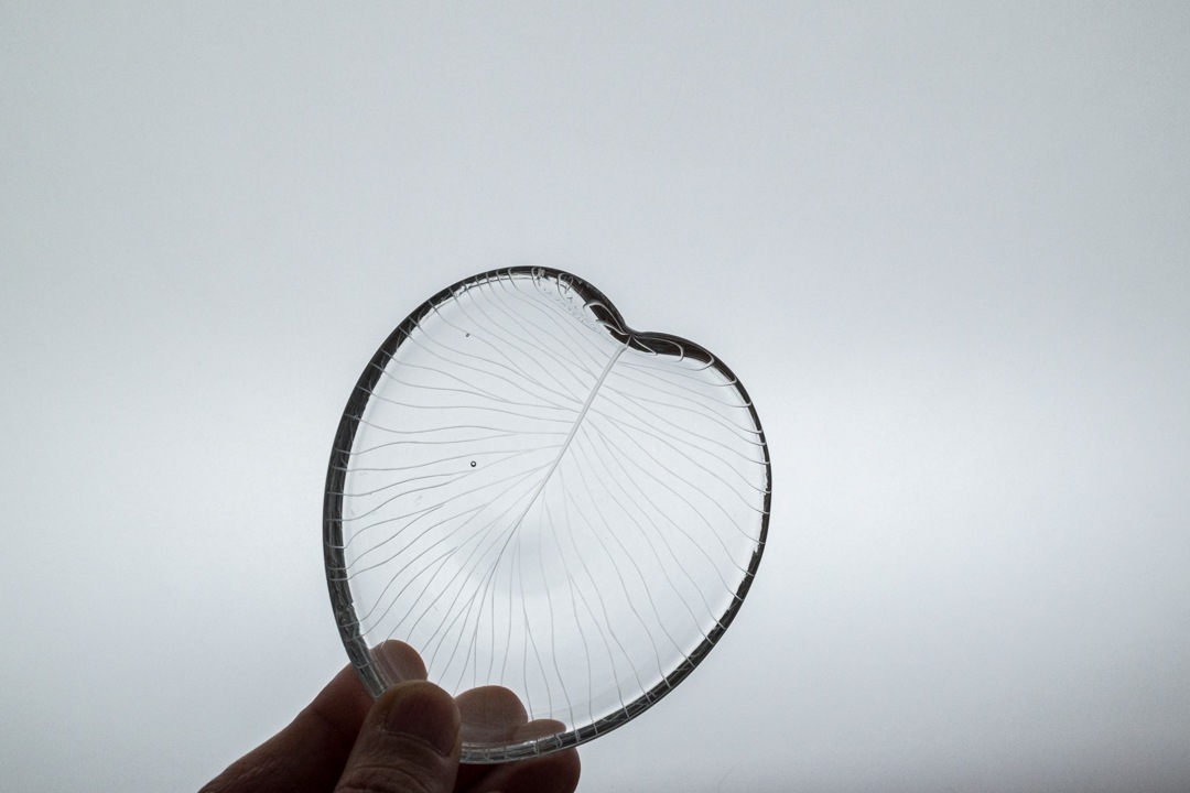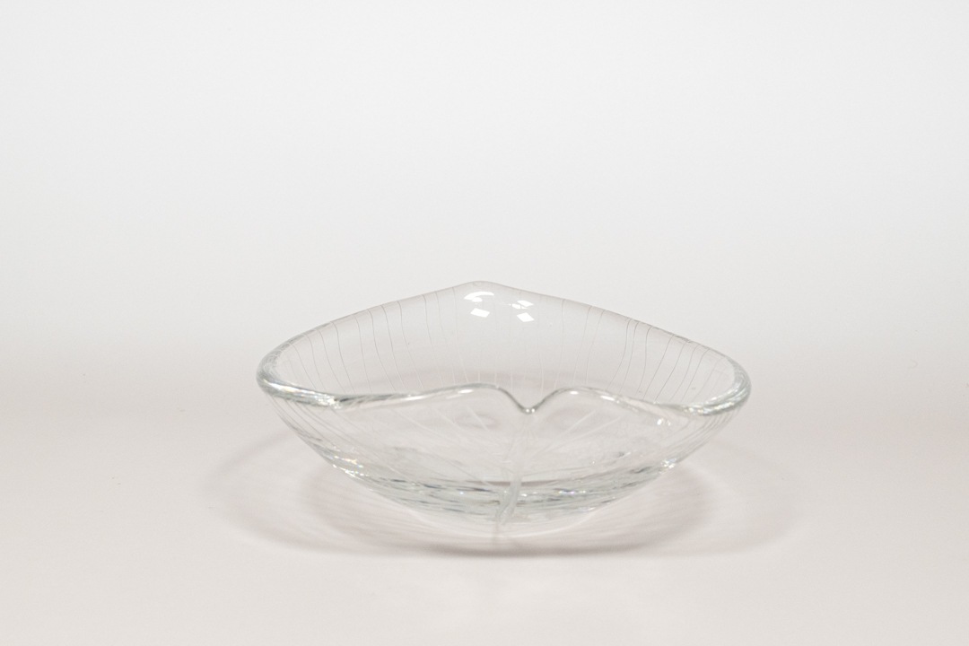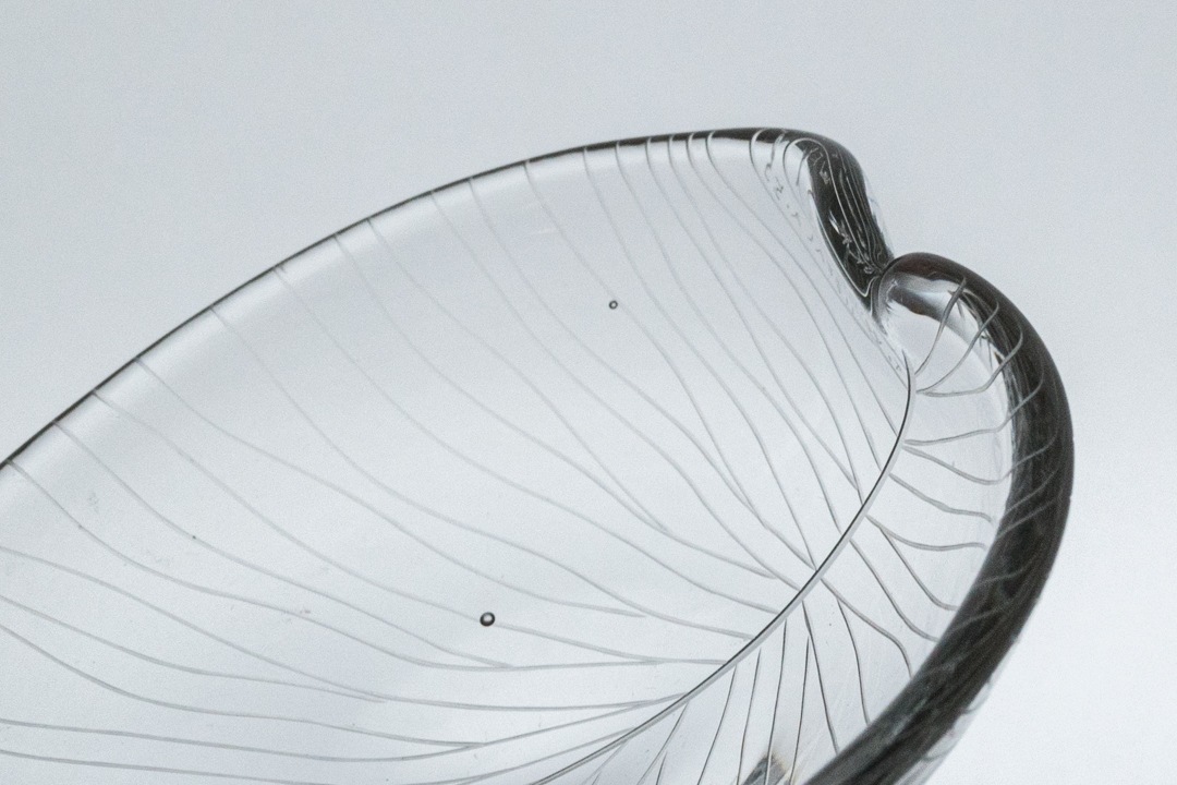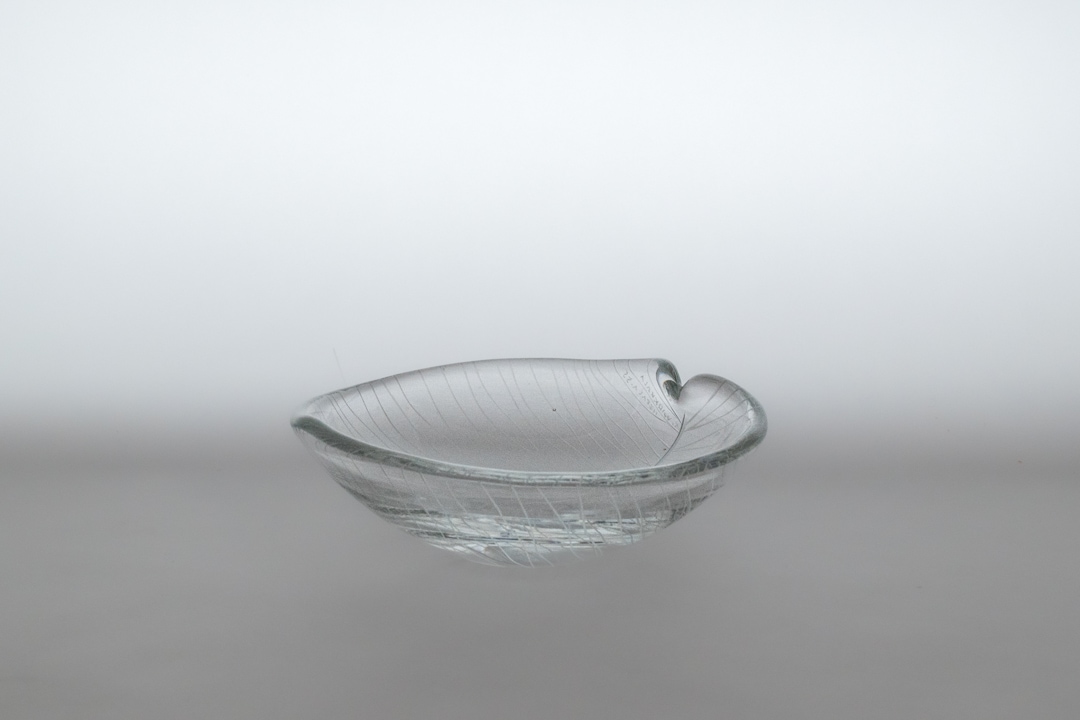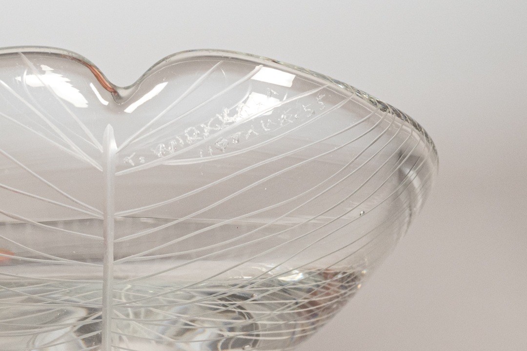 iitala/イッタラ社よりヴィンテージのベースが入荷いたしました。デザイナーであるTapio Wirkkala/タピオ・ウィルッカラはイッタラ社でのガラス作品をはじめ、幅広い分野で活躍したフィンランドを代表するデザイナーの一人です。自然からインスピレーションを受けたデザインを中心に、多くの名作を生み出しました。1955年代に発表されたこちらのシリーズは繊細なカットのラインで葉脈が表現された美しいアートピースです。ガラスの中に光を取り込み、角度によって表情を変える姿はとても美しく、小ぶりながらも存在感があります。底面には「T. WIRKKALA IITTALA-55 」のカットサインも確認できます。