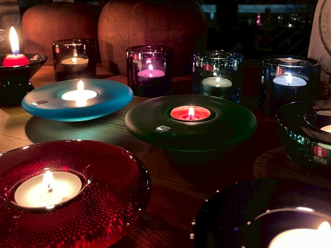 Nappiとはフィンランド語で「ボタン」という意味で、色や質感の違う様々なパターンが作られました。こちらは、やわらかな質感が魅力のマット(フロスト)仕上げ。光をふんわりと受け止め、透明ガラスとは異なる落ち着いた表情を演出します。ガラスの厚みがあり、暗い中でティーライトを灯すのはもちろん、太陽光にあててもキラキラと輝き、置く場所によって楽しみ方が変えられるのも魅力的です。